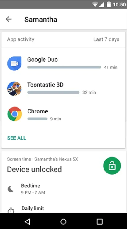 Family Link, çocuğunuzun elindeki cihazı, zaman-saat özelliği sayesinde, sizin belirlemiş olduğunuz saatte kapatacaktır.