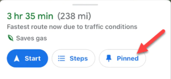 • Rota, Git düğmesinin altındaki sabitlenmiş listenizden kaldırılacaktır.