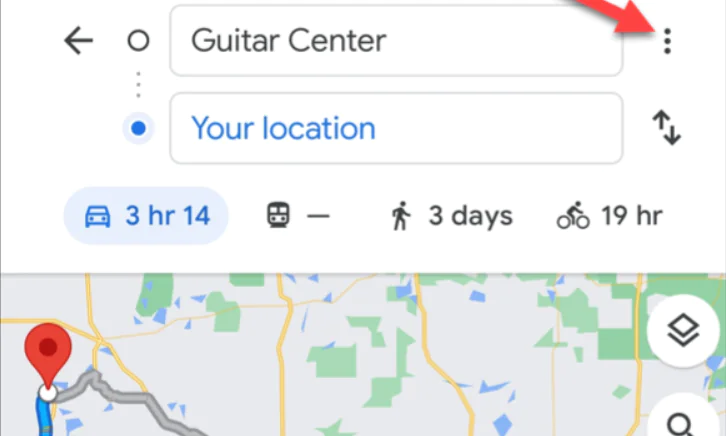 • Yol tarifi ekranında sağ üst köşedeki üç noktalı menü düğmesine dokunun.