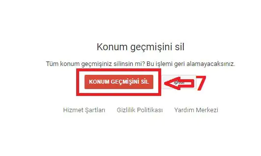 - Son olarak açılan ‘Zaman Çizelgeniz’ sayfasında, ‘Konum Geçmişini Sil menüsüne tıklıyoruz.
