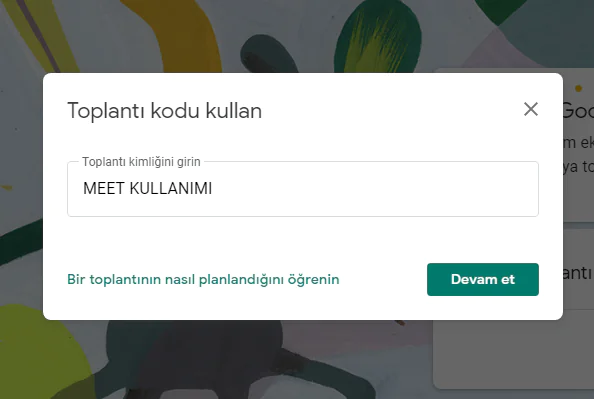 - Yeni toplantı başlat’ı tıklayın veya toplantı kodunuzu girin