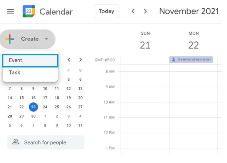 - “Oluştur”a tıklayın ve “Etkinlik”i seçin.