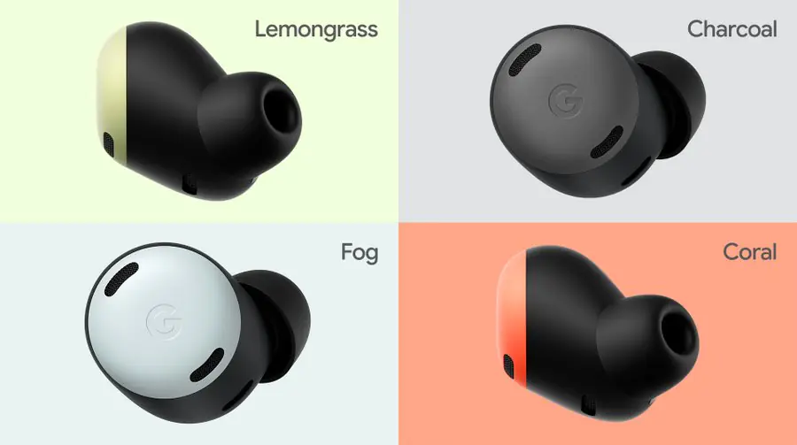 Aynı düğme şeklindeki pastel renkli tasarıma sahip olduklarından, Google Pixel Buds’ın önceki serisinde gördüğünüz Pro modeli benzer görünecektir. LED’in kapağın yanına doğru hareket etmesi dışında, durum aşağı yukarı aynı. Ancak o kadar farklı görünmese de, artık bir IPX2 derecesine sahip. Kulaklıkların kendileri için Limon Otu, Kömür, Sis ve Mercan renk seçenekleri arasından seçim yapabilirsiniz.