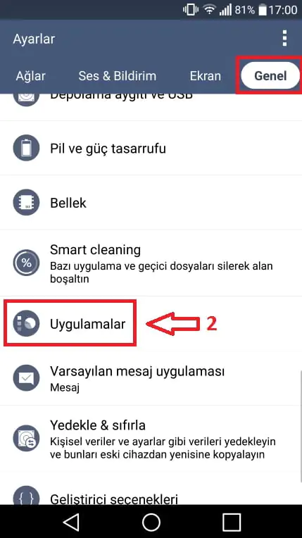 - Daha sonra açılan Ayarlar menüsünde bulunan Genel sekmesine geçiyoruz ve bu sekmede bulunan Uygulamalar bölümüne tıklıyoruz.