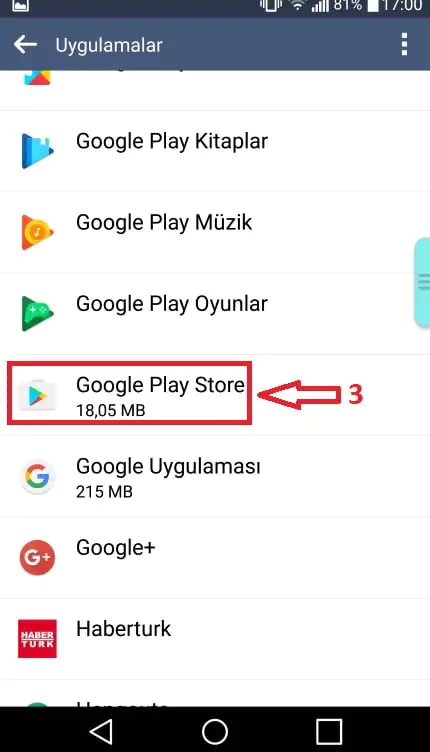 - Daha sonra Uygulamalar bölümünde, Google Play Store uygulamasını buluyoruz ve üstüne tıklıyoruz.