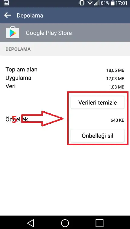 - Son olarak Depolama bölümünde bulunan Verileri Temizle ve Ön Belleği Sil tuşuna basarak uygulama ön belleğini temizliyoruz.