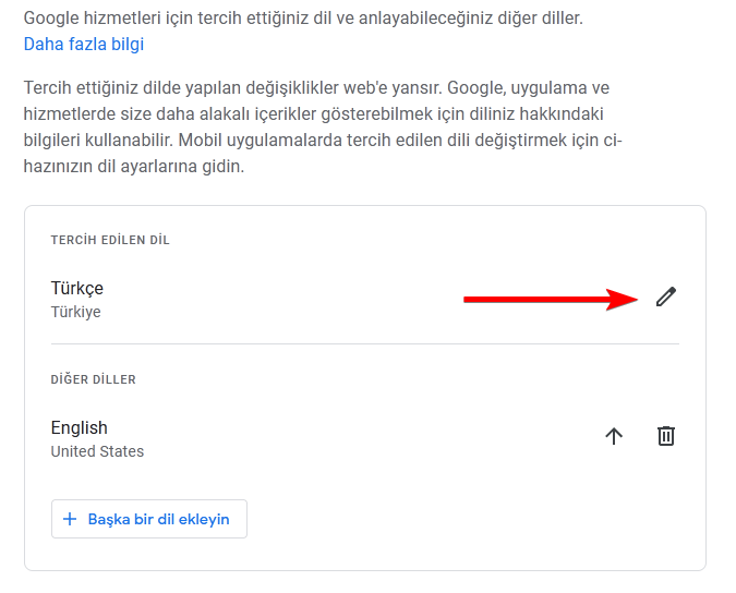 Varsayılan para birimini değiştirmek için öncelikle Google hesabınızın dil seçeneklerine gidip “Tercih Edilen Dil” bölmesindeki kalem işaretine tıklamanız gerekiyor.