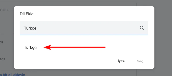 Tercih ettiğiniz dili arama kutusuna yazın. Eğer Türk Lirası kullanmak istiyorsanız Türkçe’yi seçmelisiniz.