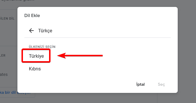 Hemen ardından Türkiye’yi seçin.