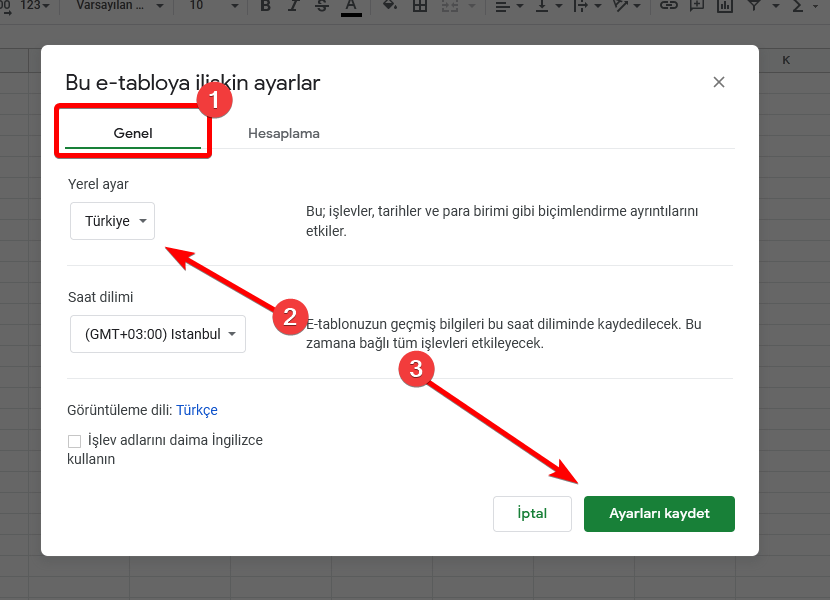 “Genel” sekmesinden “Yerel ayar”ı tercih ettiğiniz para biriminin bulunduğu ülke olarak seçip ayarları kaydedin.