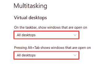 6. Görev çubuğunu ve Alt + Tab görev geçişini yapılandırmak için iki açılır menüyü kullanın.