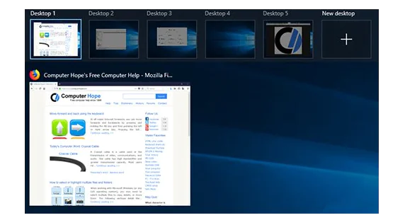 Görev Görünümü’nde, geçerli masaüstünüzde açtığınız uygulama pencerelerine genel bir bakış görürsünüz. Bunun altında, masaüstlerinizin her birini temsil eden simgeler göreceksiniz.