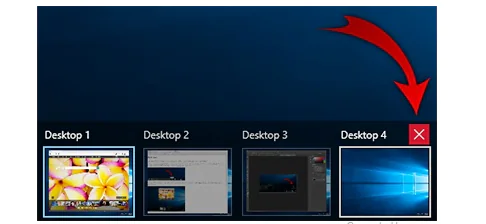 Masaüstünü kapatmak için, görev görünümünde fareyi söz konusu masaüstünün simgesinin üzerine getirin, ardından sağ üst köşedeki X işaretini tıklayın. Geçerli masaüstünü kapatmak için Win + Ctrl + F4 klavye kısayolunu da kullanabilirsiniz.