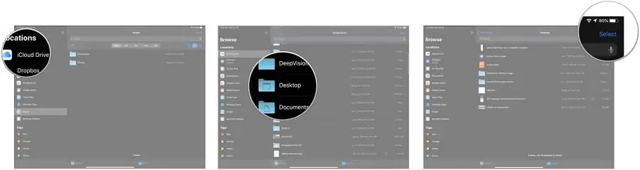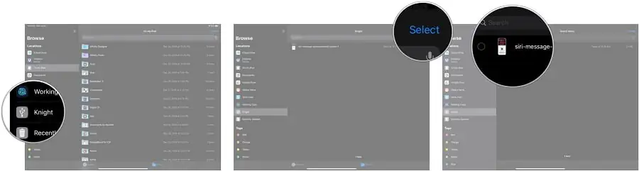 - Dosyalar (Files) uygulamasında, Gözat (Browse) menüsünden veya kenar çubuğundan, depolama hizmetinizin ismine dokunun.