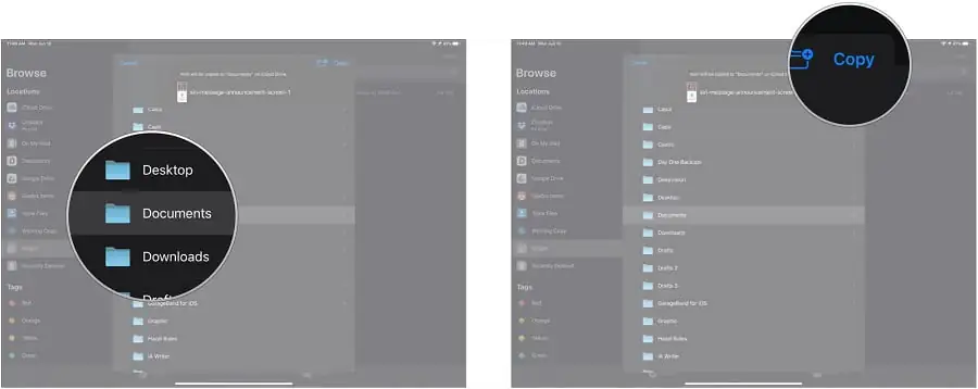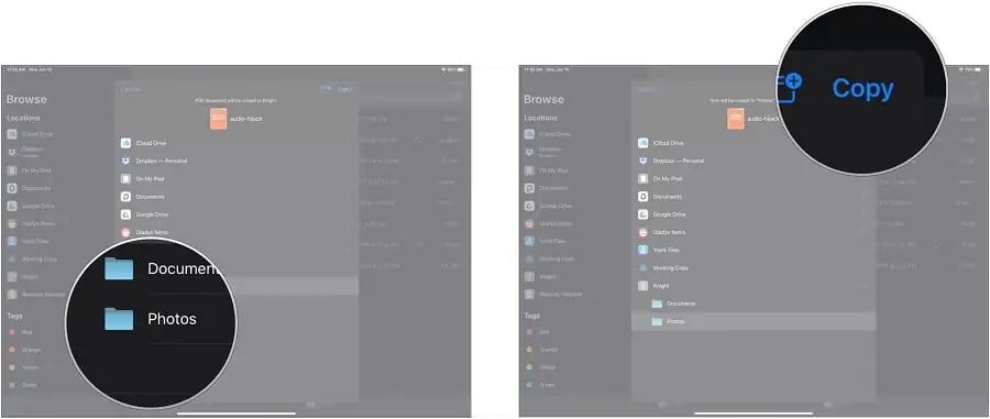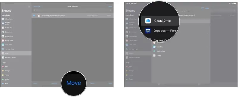 - Dosyayı veya dosyaları taşımak istediğiniz konuma dokunun (Örn: iCloud Drive, Dropbox veya iPhone’um / iPad’im gibi).