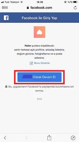 Hater uygulamasına üye olurken Facebook hesabı ile giriş işlemi de sağlayabilirsiniz. Yalnız Facebook’ta olan verileriniz Hater uygulamasına yansımayacak.