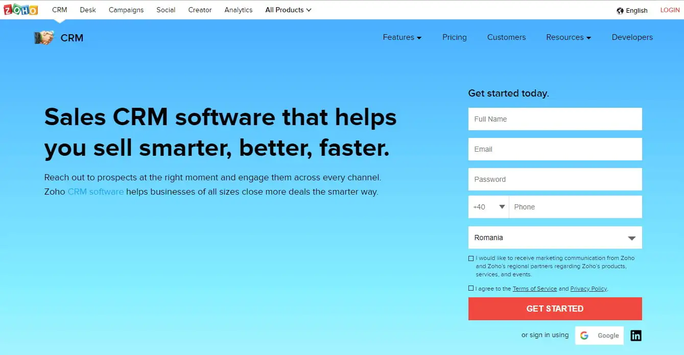 • Zoho CRM