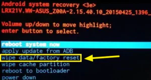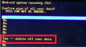 • Evet’i seçin – tüm kullanıcı verilerini silin ve Güç düğmesine basın