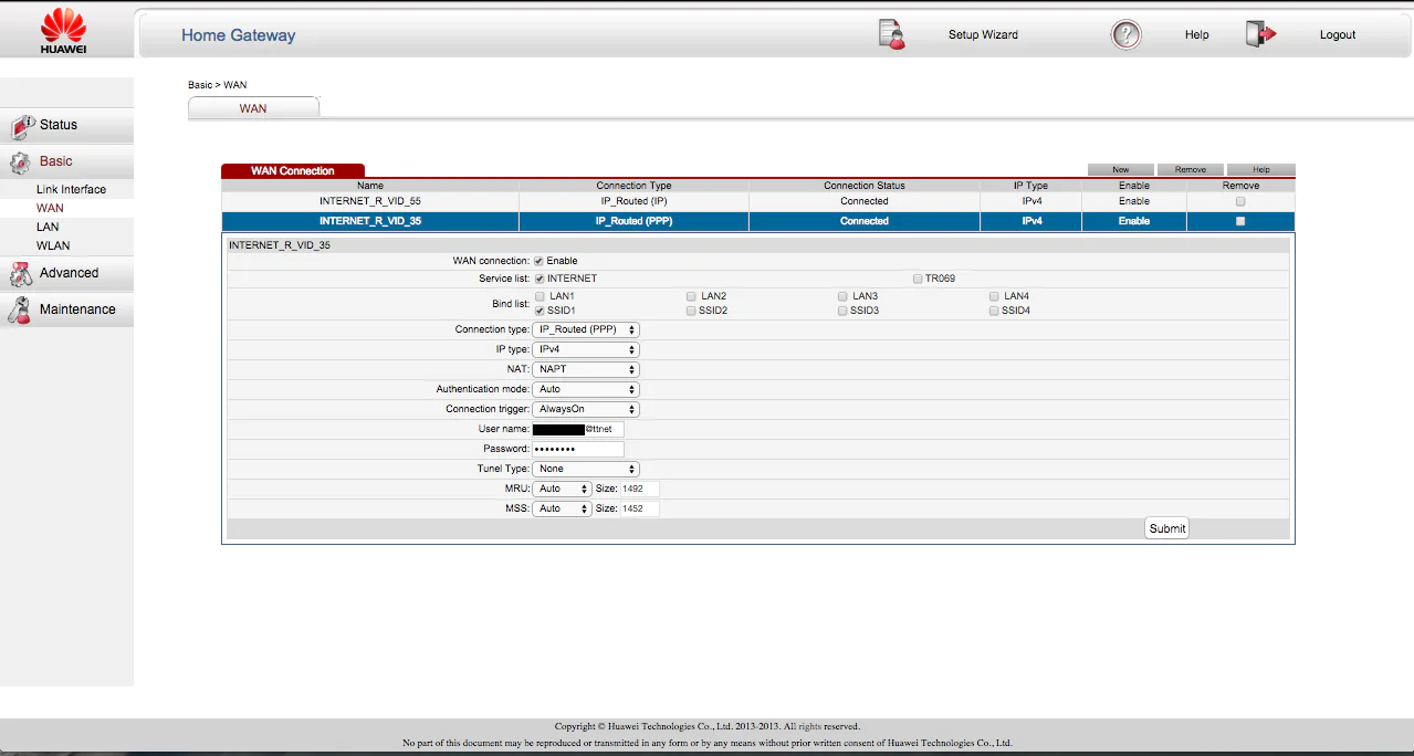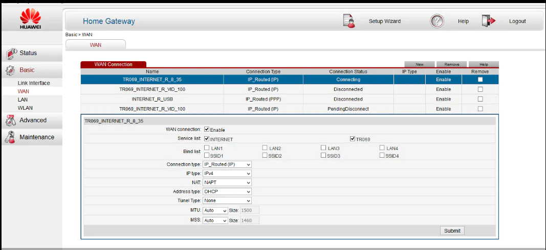 Sol menüden WAN butonuna tıklayınız ve gelen menüden  İNTERNET_R_VID_35 seçeneğinin üzerine gelerek tıklayınız.