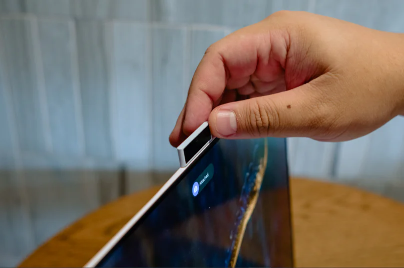 İkonik Manyetik Kamera: Ön kamera, modüler ve manyetik bir tasarıma sahip. Klavyenin sol üst köşesine tam oturan bu modülü tek parmak hareketiyle çıkarıp takabiliyorsunuz. Bu, sadece gizlilik için değil, aynı zamanda ekranın etrafındaki çerçeveyi inanılmaz derecede daraltarak neredeyse çerçevesiz bir görüntü deneyimi sunuyor. Modül yerine sıkıca oturuyor, kaygılanmanıza gerek yok.
