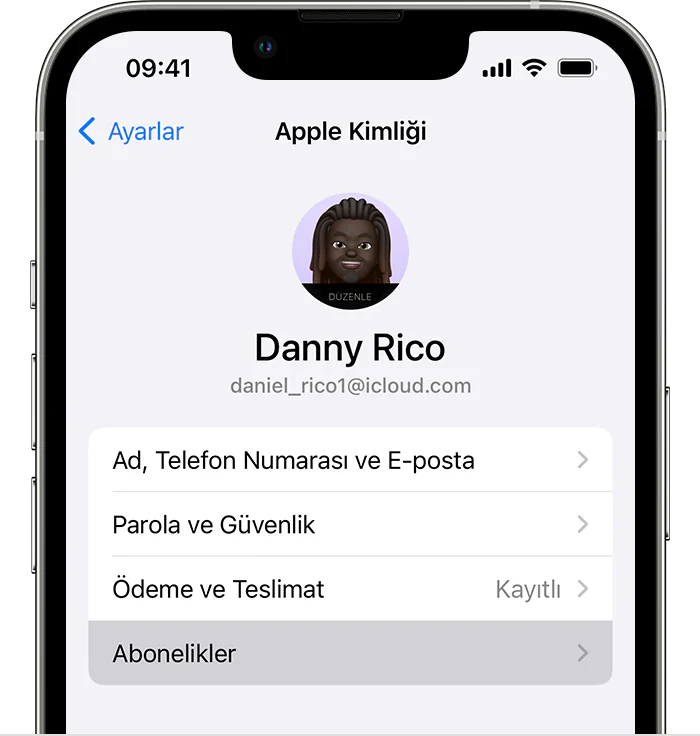 Aboneliklerinizin listesi görüntülendikten sonra, iptal etmek istediğiniz aboneliği seçin. Bu, iCloud abonelik iptali işlemini gerçekleştirmenizi sağlar.