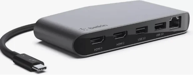 - Yerleştirme istasyonu, tüm bu kablo üzerinden video, ses, güç ve hatta bir veri bağlantısı sağlar. En önemlisi, bu tek Thunderbolt, bağlantısı 2 harici monitör bağlantı noktasına erişim sağlar.