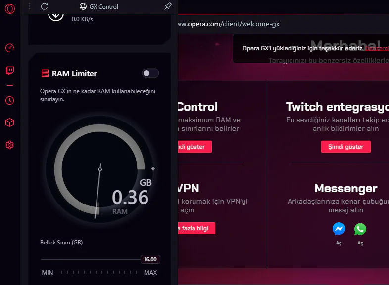 Opera GX‘ten önce oyuncular genellikle oyun deneyimlerini yavaşlatmamak için tarayıcılarını kapattılar. Web’de yaptıklarından ödün vermelerine gerek kalmadan oyuncular oyunlarının daha sorunsuz çalışmasını sağlamak için GX Control özelliğini geliştirilmiştir.