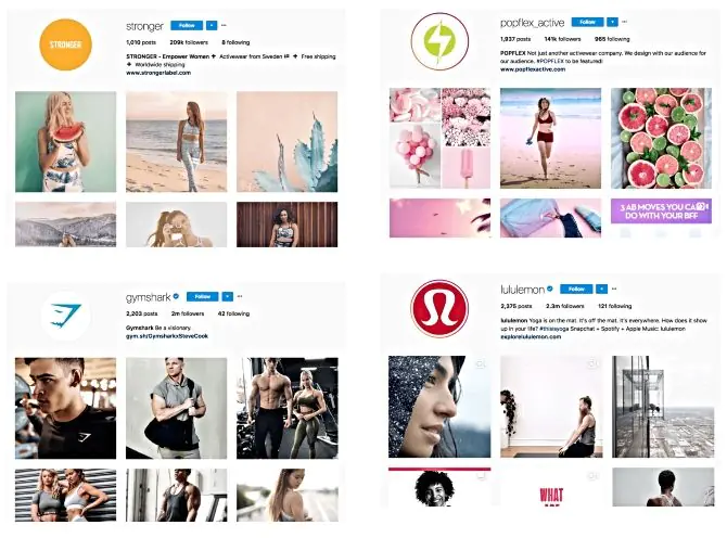 Tutkunuzu tanımlayın, ardından sosyal kişiliğinizi bu daha geniş kategori etrafında geliştirin. Burada, hepsi fitness şemsiyesi altına giren, ancak her biri masaya farklı bir lezzet getiren dört farklı markaya bakıyorsunuz.