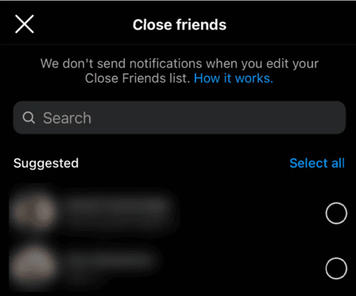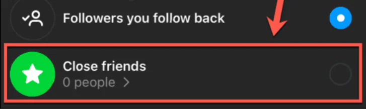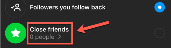 - Yakın Arkadaşlar’ı seçin.