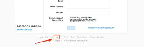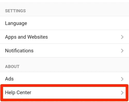 - Sayfanın en altına gidin ve Yardım (Help) seçeneğine tıklayın.