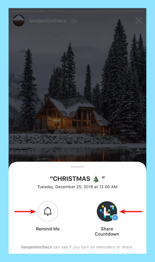 Birileri hikayenizi gördüğünde ve geri sayımınıza dokunduğunda, geri sayım için hatırlatma bildirimi alma veya kendi kullanıcı hesaplarında paylaşma seçeneği olacak.