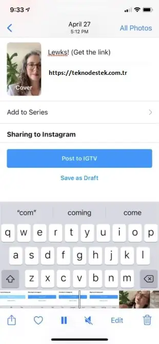 - IGTV videonuzun başlığına bağlantıyı (linki) ekleyin.