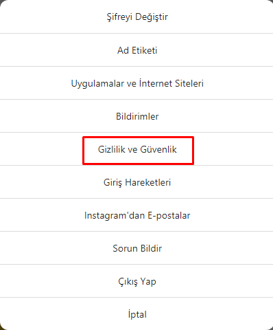 Web tarayıcısından giriş yaptıysanız ayarlardan sonra Gizlilik ve Güvenlik seçeneğine giriş yapalım.