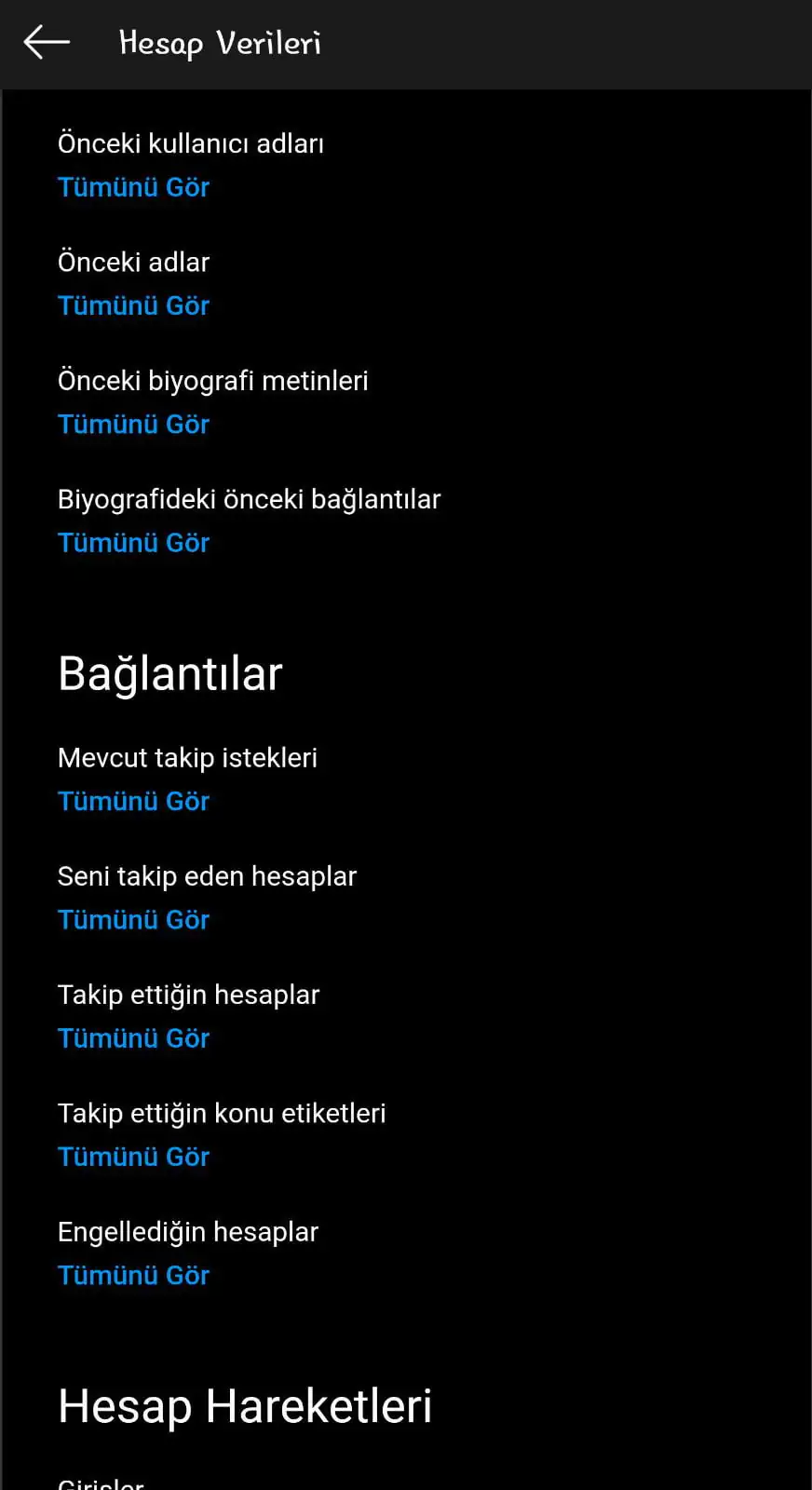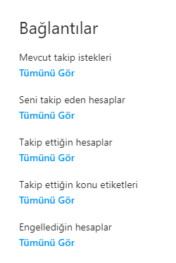 Gelen ekranda Mevcut takip isteklerinin altında ki Tümünü Gör seçeneği ile Mevcut Takip İstekleri Görme Takip isteği gönderdiğiniz kullanıcıları görebileceksiniz. İsterseniz takip isteklerinizden iptal diyerek vazgeçebilirsiniz.