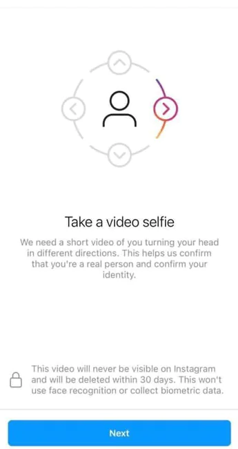 Size ait bir instagram hesabına giriş yapmakla ilgili bir sorun yaşamanız durumunda sizden instagram ekibi hesabın gerçek sahibi siz olduğunuzu doğrulayabilmek için bu yöntem ile sizden selfie videosu göndermenizi istemektedir.