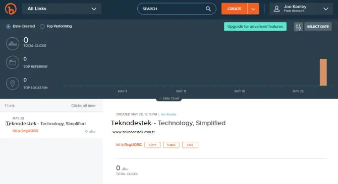 Bitly‘yi kullanmaya karar verirseniz, kayıt olmadan da ana sayfada bulunan bağlantıyı kısaltma özelliğini kullanabilirsiniz. 7-adet bitiş karakteri rastgele olan https://bit.ly/2ZRnZI6 gibi bir bağlantı oluşturacaktır.