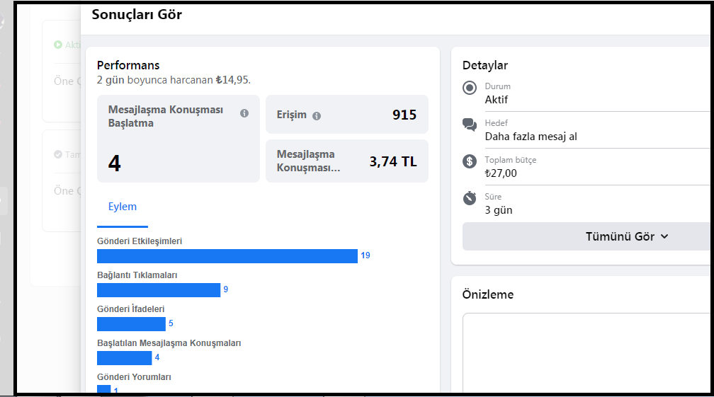 Reklamınızda oluşan gösterim sayısı daha çok reklam bütçenizle ilgilidir. Bu yüzden gösterim sayısı, reklamınızda başarılı olduğunuz anlamına gelmez. Satış hedefiyle verdiğiniz bir reklam ise daha çok etkileşimlerle ilgilidir. Etkileşimlere örnek olarak: mesajlar, tanıtım tıklamaları, yorumlar ve gönderinizi kaydetme sayısı vb. Toplam etkileşimleri gösterim sayısıyla kıyaslayarak değerlendirebilirsiniz. Tabi ki bir de bu işin bir fayda boyutu mevcut. Reklam gideriniz ile satış olarak gerçekleşen ya da gerçekleşmeye yakın bir iletişim gerçekleşti mi? Fiyat ve performans olarak değerlendirmesini yapıp başarınızı tamamen kendi hedeflerinize göre test edebilirsiniz.