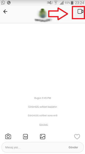 • Açılan sohbet ekranının sağ üst kısmındaki görüntülü arama simgesine tıklayınız.
