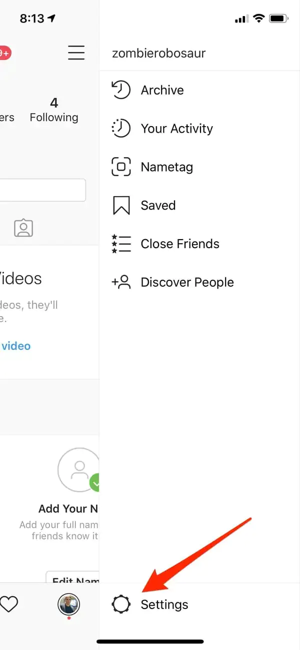 • Parmağınız, profil sayfanızın üst kısmındayken, (ekranı) sola kaydırın veya sağ-üstteki üç-çizgi (≡) simgesine dokunun.
