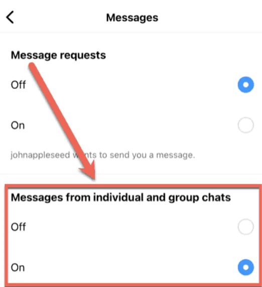 - Bireysel ve grup sohbetlerinden mesajlar seçeneğinin yanında Kapalı’yı seçin.