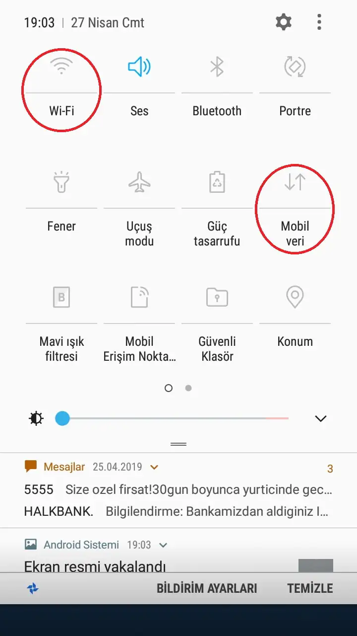 - İster Wi-Fi (kablosuz) bağlantıyı, ister Mobil Veri bağlantısını açabilirsiniz.