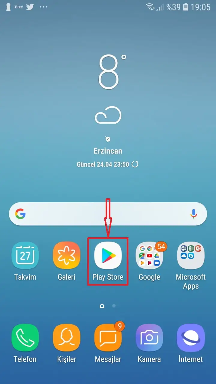 - İnternet bağlantısını aktif ettikten sonra Google Play Store veya App Store uygulama marketi uygulamasını açıyoruz (başlatıyoruz).