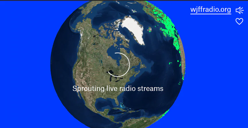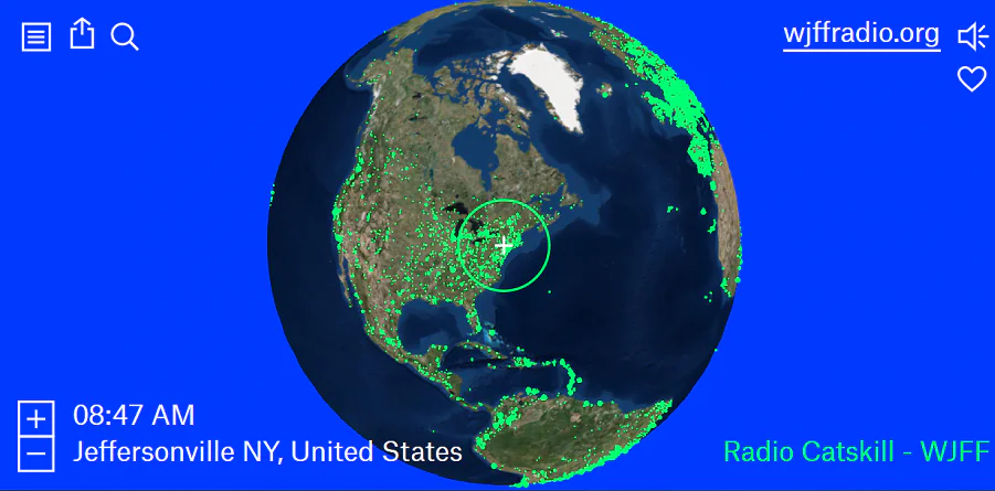 Her biri yeşil bir nokta ile temsil edilen ve basit bir tıklama ile erişilebilen binlerce radyo istasyonunun yerini gösteren bir dönen dünya hayal edin.