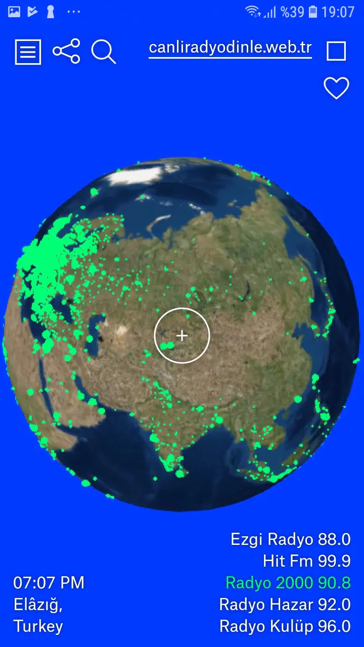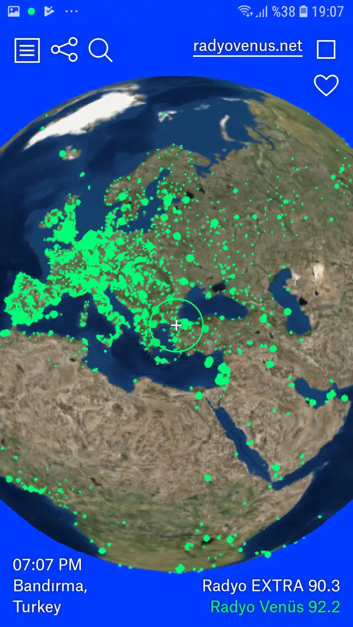 - Yine iki parmağınızı kullanarak haritayı uzaklaştırabilir ve küre şeklindeki dünya haritasını döndürerek farklı ülkelerin, kıtaların radyolarını dinleyebilirsiniz.