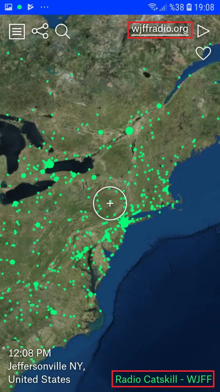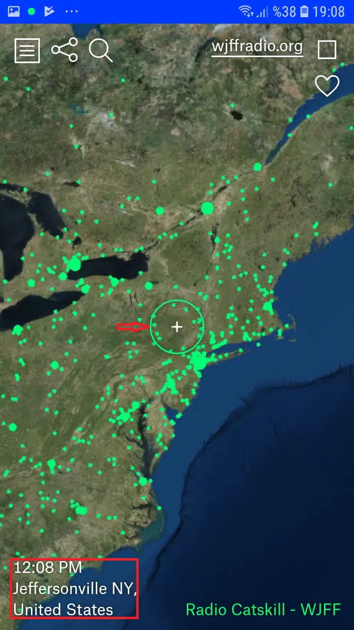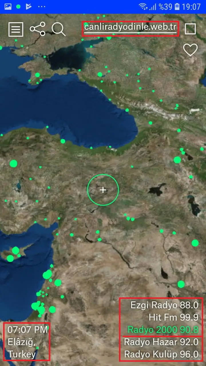 - İki parmağınızı kullanarak haritayı döndürebilir, istediğiniz konuma, bölgeye, lokasyona yaklaştırabilir ve istediğiniz bir konumda bulunan yeşil nokta şeklindeki radyo istasyonlarına dokunup, o radyo istasyonuna ait yayını dinleyebilirsiniz.