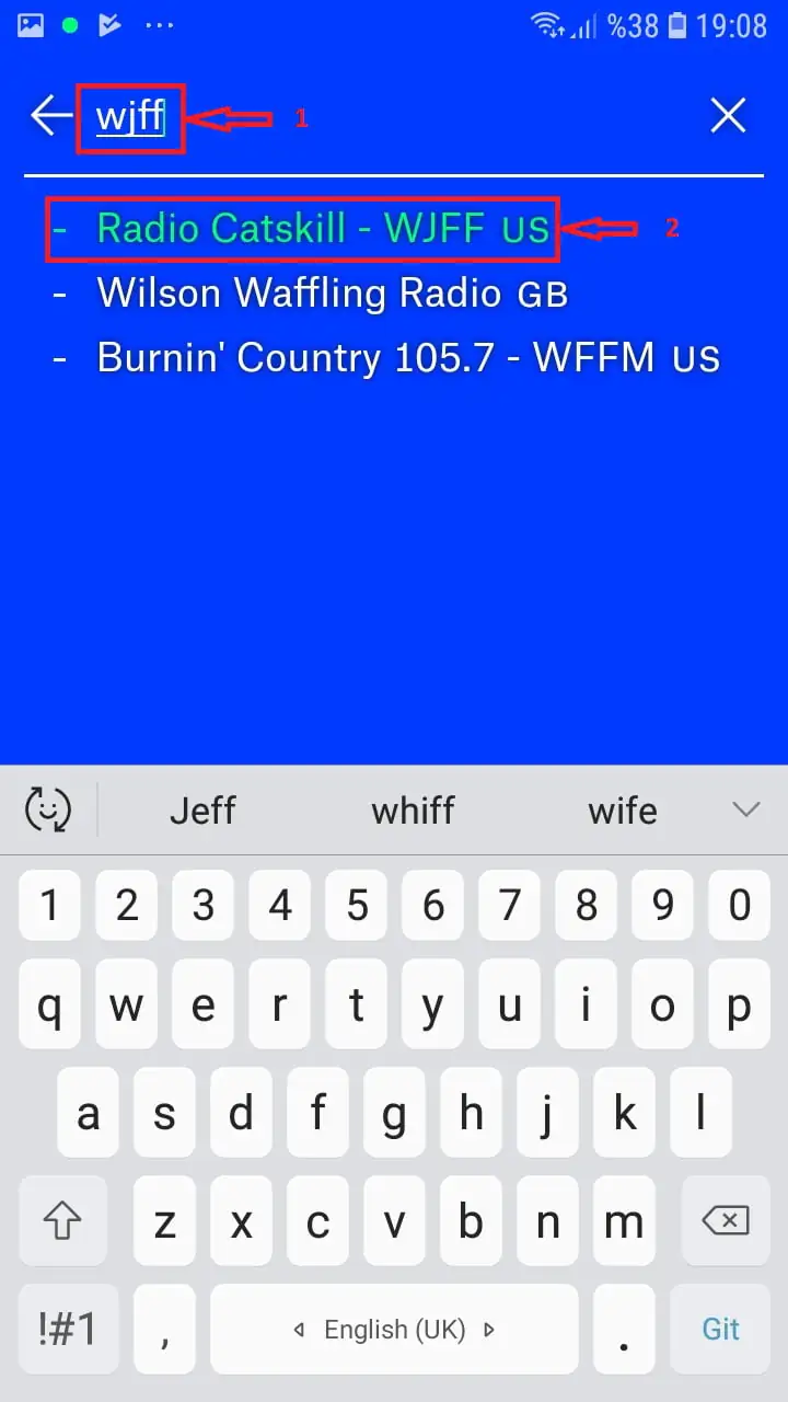 - Çıkan arama seçeneklerinden, aradığımız radyo istasyonu ismine veya konum ismine dokunuyoruz.