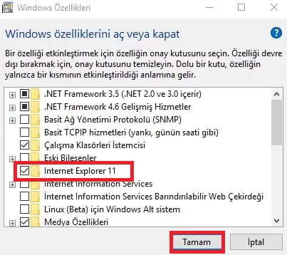 Bilgisayar yeniden açıldığında Internet Explorer‘ı göremeyeceksiniz. Tekrar etkin hale getirmek için, işlemlerin tersini yapabilirsiniz.