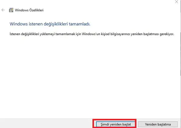 - İşlem tamamlandı. Yaptığımız değişikliklerin etkin olması için bilgisayarımızı yeniden başlatalım.