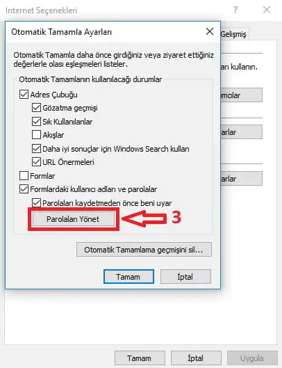 Internet Explorer’da Kayıtlı Şifrelere Ulaşma Adımları