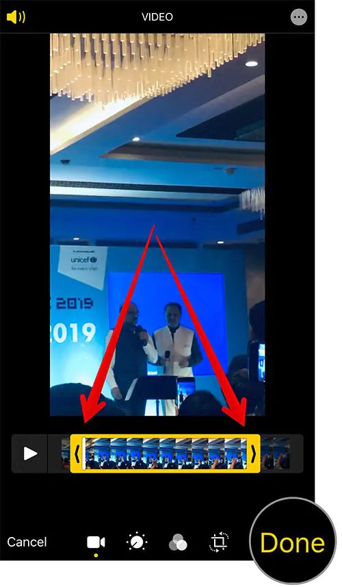 - Yaptığınız düzenleme tam istediğiniz gibi olduğunda, videoyu kaydetmek için Bitti (Done) menüsüne (linkine) dokunun.